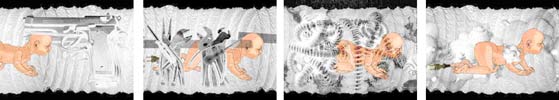 laser printed on acetate and laminated onto aluminum foil on plexiglass