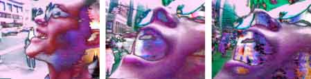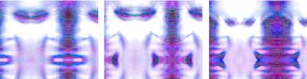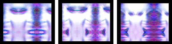 3 acetate laser prints between glass panes in wooden frames for mounting in front of light source