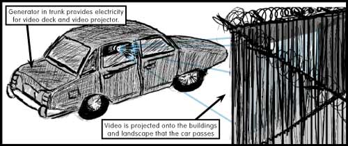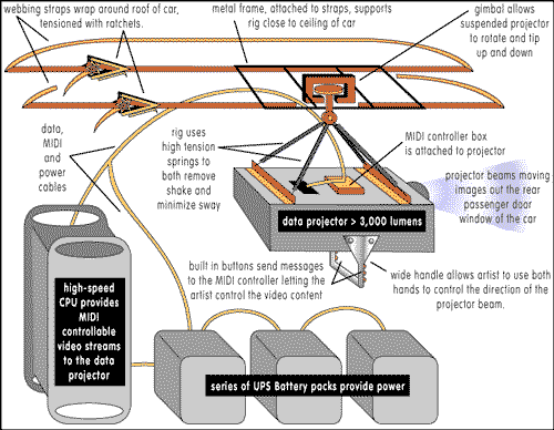 car, projects these video streams out the rolled down