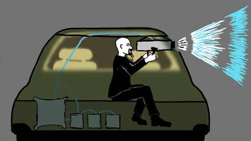will then be projected from the moving car by a brighter