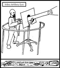 the barrel of a rented armored tank, a bazooka, etc., etc. |