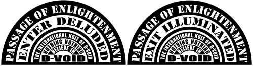 D-Void: Passage of Enlightenment is an interactive video passageway that, when activated, takes the participant through a series of animation and audio sequences that attempt to indoctrinate the subject into emptying their minds of beliefs and embrace the void, nothingness. |